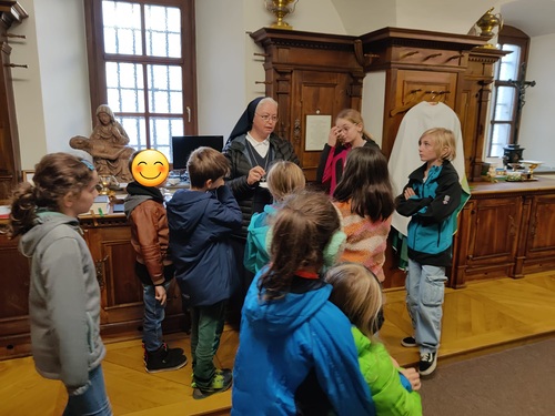 Einen spannenden und kurzweiligen Nachmittag haben unsere Ministrantinnen und Ministranten mit Sr. Maria und mit dem Thema Gewänder und Tücher für die Liturgie verbracht.