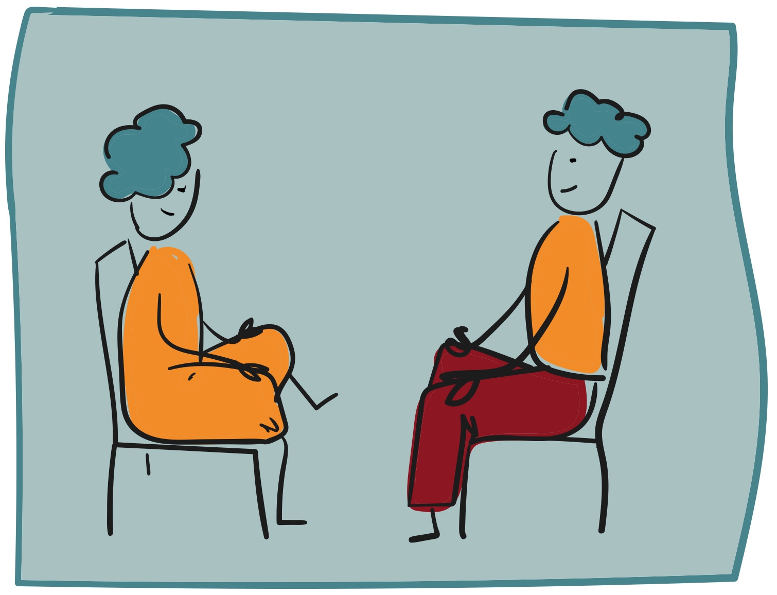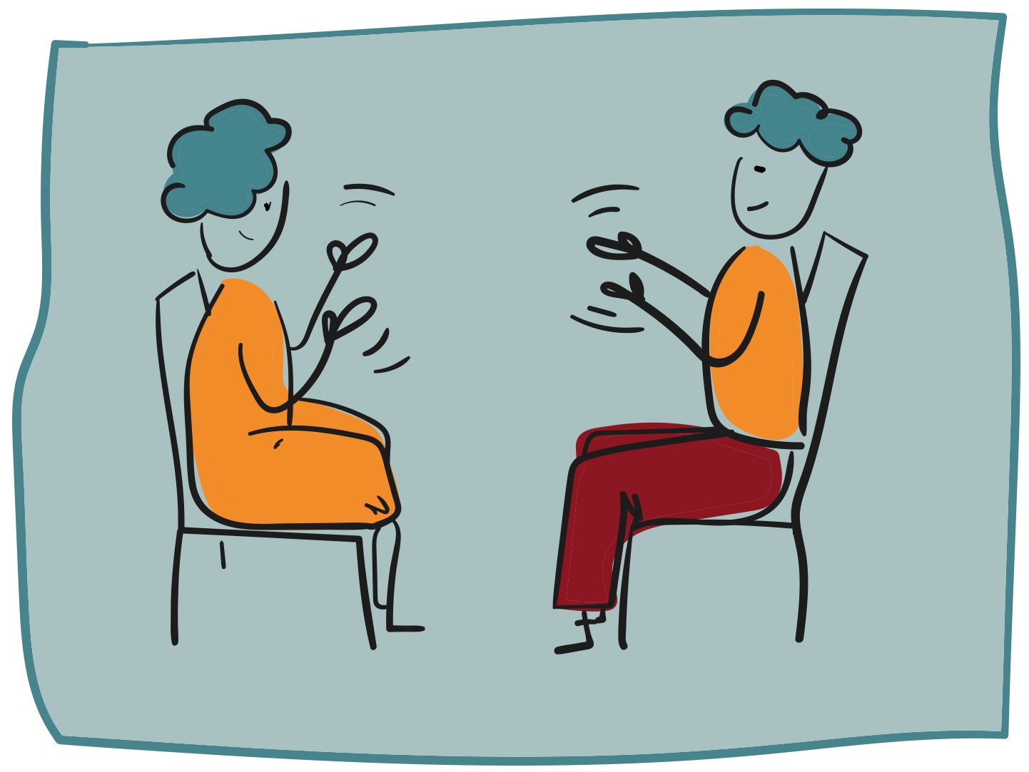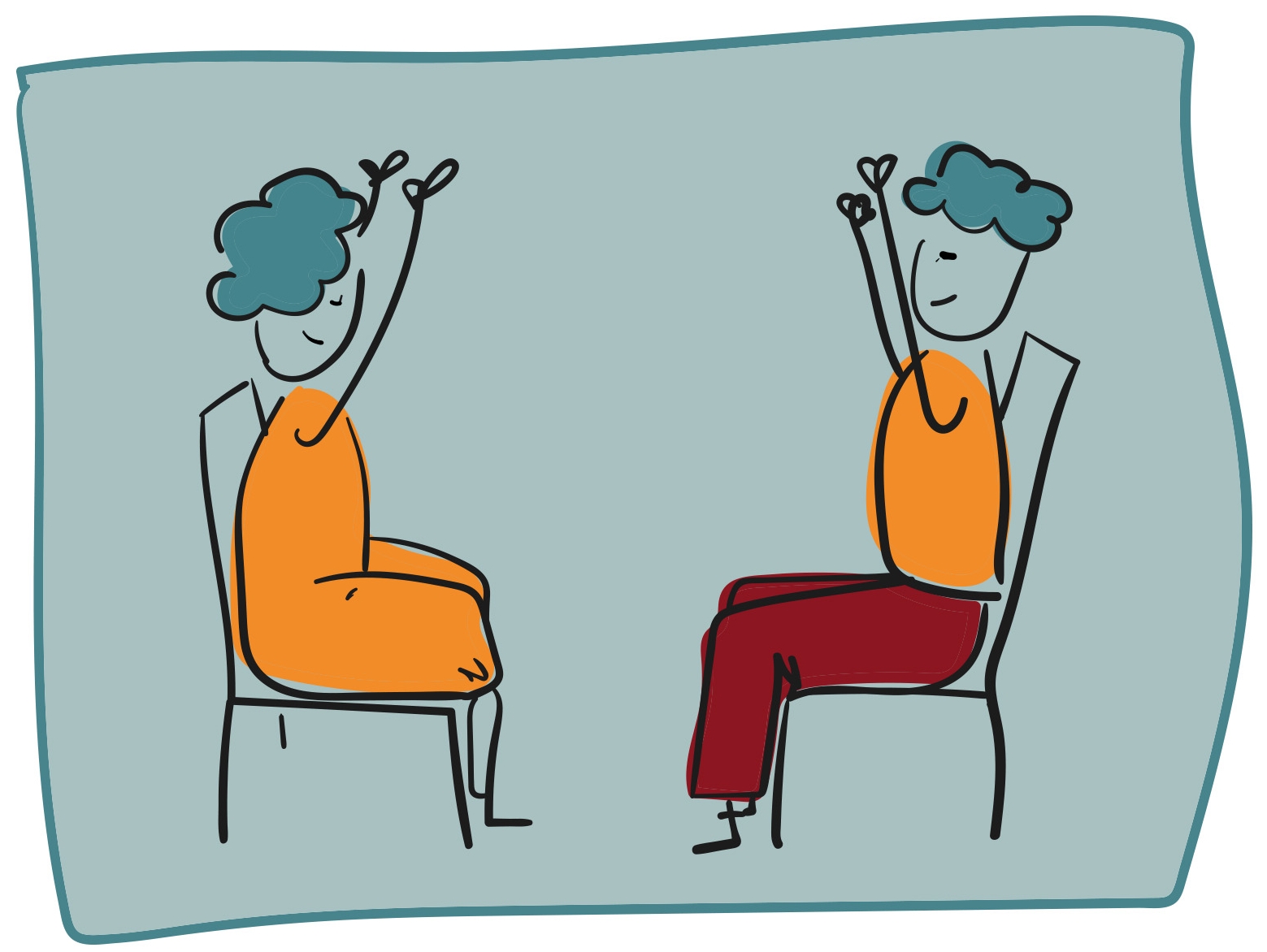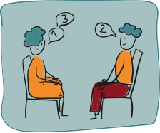 1. Schritt: Zu zweit gegenüberstehen oder -sitzen.
