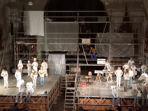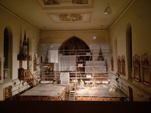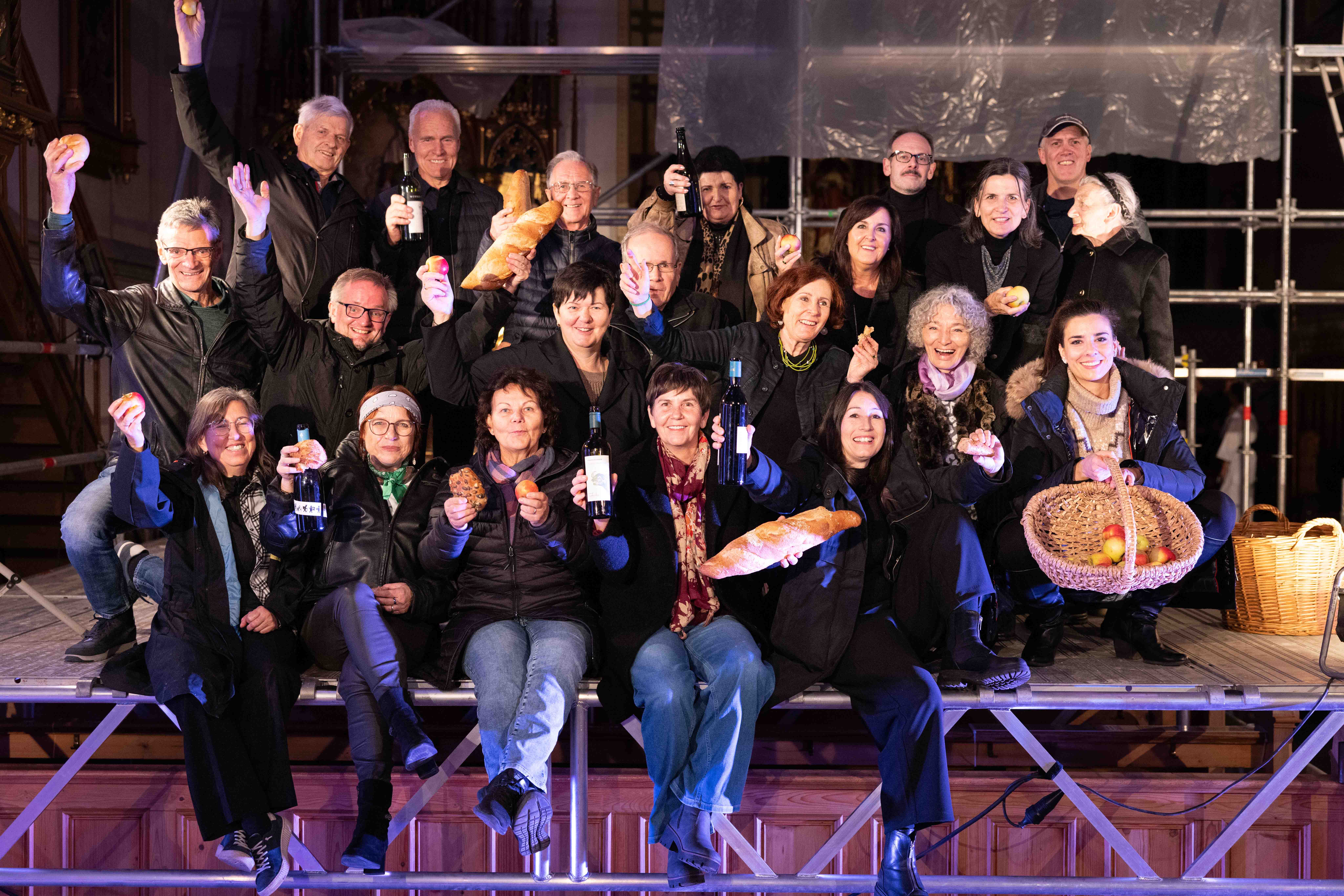 Andreas Jähnert und sein Team inszenierten – in den Grundelementen eines Gottesdienstes – ein beeindruckendes Stück immer in Verbindung zu uns und unserer Gemeinde mit ihrer Geschichte und ihren Geschichten. Immer wieder wurden an den - von KI aus x-Fotos erstellen - „Durchschnittsegger“ Fragen gestellt. Die KI-Stimme gab Antworten und warf gleichzeitig Fragen auf. Gute Nachrichten wurden gesucht. Wir hörten die Predigt von der Kanzel. Der Frage, wer denn „Vater Unser“ sei, wurde nachgegangen und mit dem erlebbaren Wir wurden wir zum Teilen von Essen und Trinken animiert. Ein starkes Plädoyer für „Give peace a chance“ bildete den theatralischen Abschluss bevor wir uns noch einmal auf unsere Heimat und Herkunft besannen und in einem großen Gemeinschaftschor – aus Akteur:innen und Besucher:innen „ein Wälderdorf“ erklang.