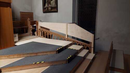 Manche werden sich am Patrozinium sicher fragen, wieso der Chor bei diesem schönen Anlass nicht vorne im Altarraum singt. Es hat sich aber gezeigt, dass es bei den vielen Mitwirkendenden (gut 60 Sängerinnen und Sänger plus Orchester und Solisten mit zusammen über 25 Personen) dort zu eng werden würde und wir daher auf die Empore ausweichen müssen. Dazu war eine Erweiterung des bestehenden Chorpodestes erforderlich. Walter Mayer jun. hatte sich dieser Aufgabe in Planung und Ausführung angenommen und sie zeitgerecht souverän gelöst. Danke Walter!