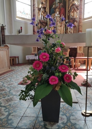 eine schön geschmückte Kirche Kirchenschmuck Das Blumenschmuckteam in der Kirche hat eine wichtige und ehrenvolle Aufgabe: Wir sorgen dafür, dass der Kirchenraum... Mehr lesen