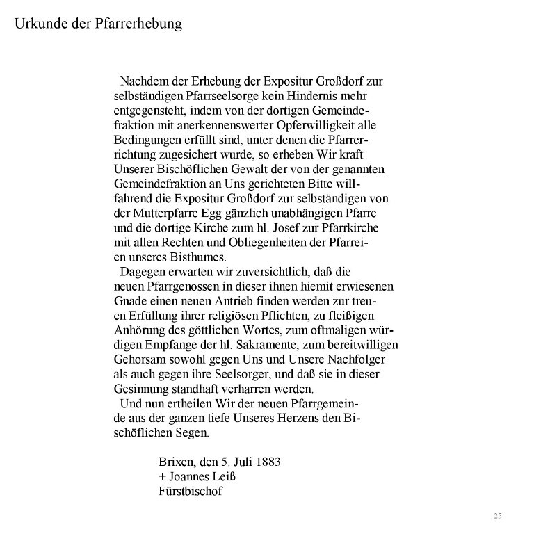 Großdorf gehörte bis zum Beginn des 18. Jh. kirchlich zur Pfarre Egg.