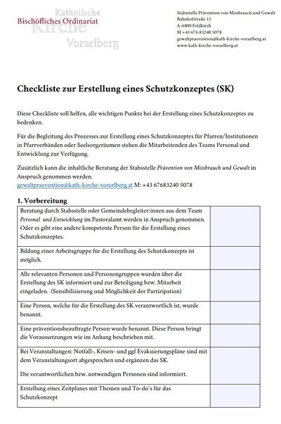 Checkliste zur Erstellung eines Schutzkonzeptes
